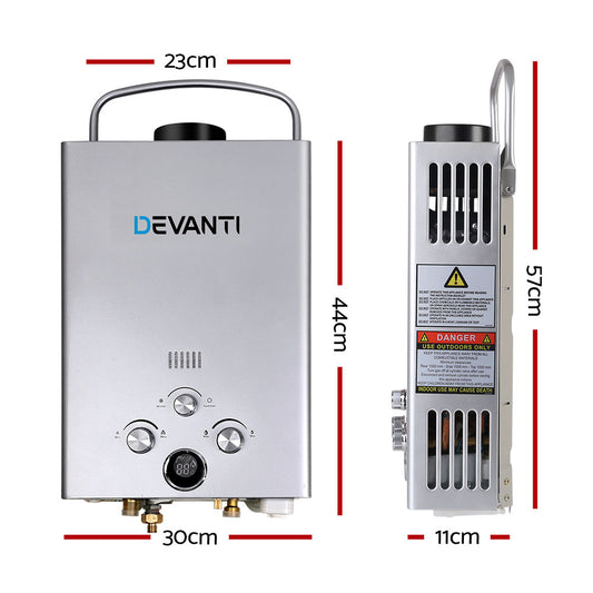 Devanti Outdoor Portable Gas Water Heater 8LPM Camping Shower Silver